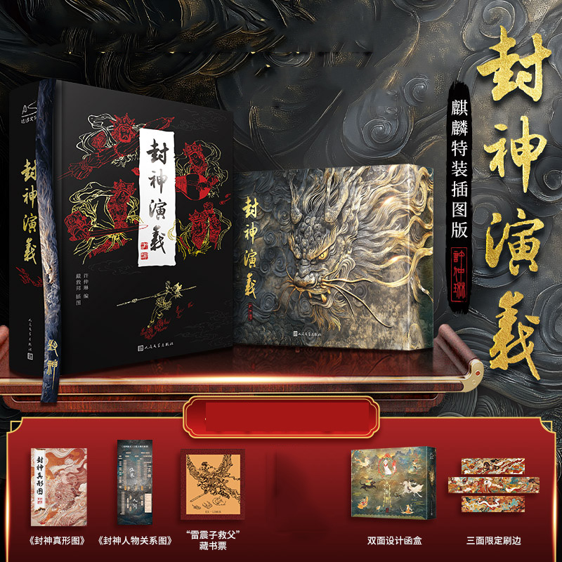 【麒麟特裝刷邊插圖版】《封神演義 》 雙面函套 隨書附贈:封神真形圖+人物關係圖+藏書票