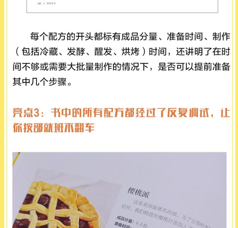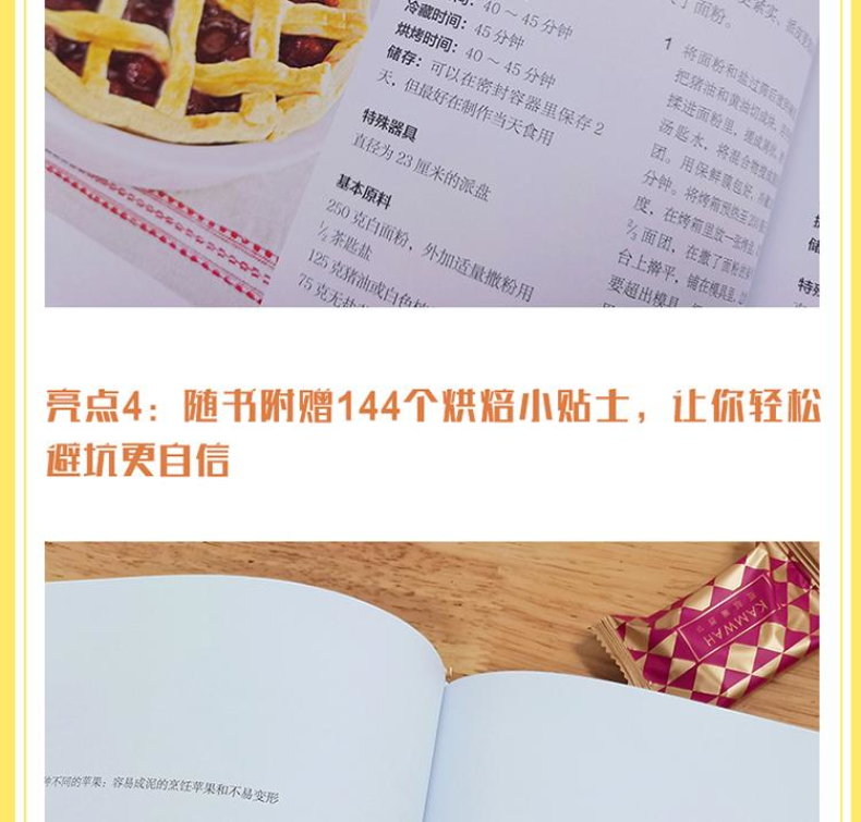 本書是經典烘焙和現代Z愛的指南,不只是告訴你該做什麼,而是向你展示拍打和折疊的區別是什麼,「軟峰」應該是什麼樣子,怎樣做酥皮。在烘焙的時候,知道指示的含義可能會讓你的蛋糕有精彩的表現,也會讓你的蛋糕變得鬆軟。這就是《烘焙全書》的用武之地。