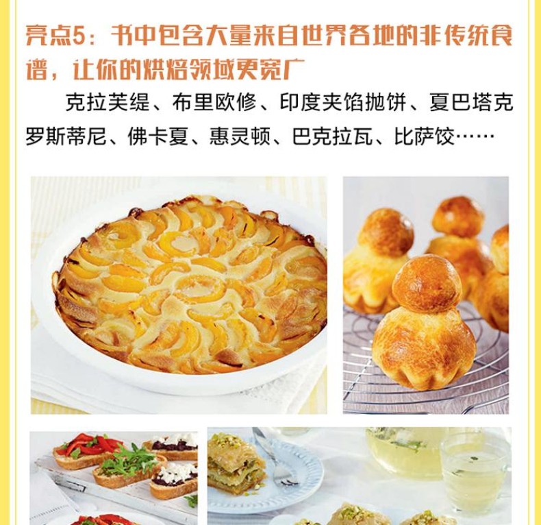 書中80個經典食譜中的每一個都有充分的說明,並配有烘焙過程每個階段的照片。看看其他烘焙書籍,它們只會教你如何揉麵團,將黃油和麵粉揉搓在一起,並在餡餅或塔上製作糕點格子。學會了書中的80個主要配方後,你就可以在這些經典作品上嘗試250多種變體,或者將它們作為靈感,在你所學的基礎上構建自己的烘焙作品。
