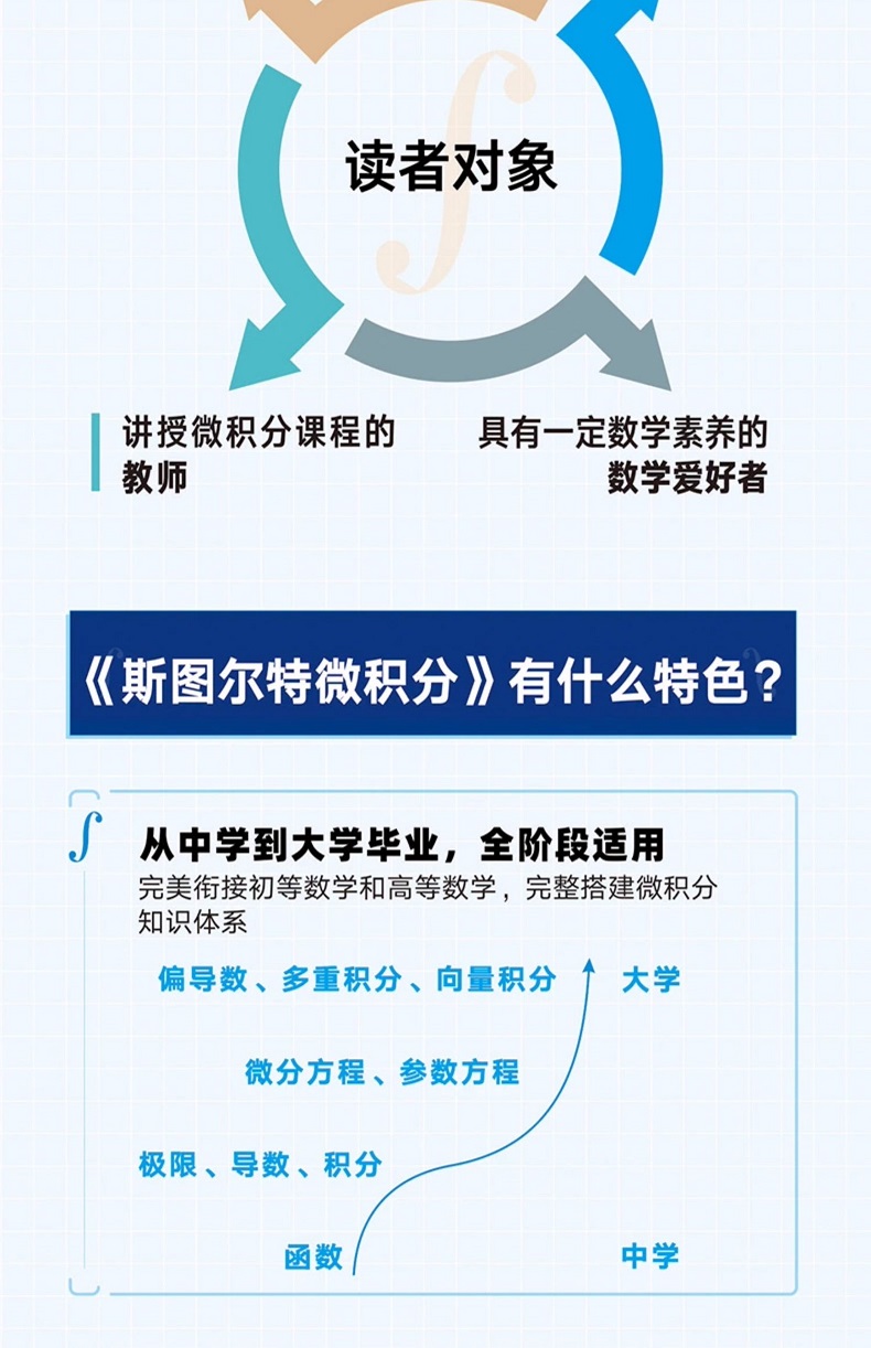 詹姆斯‧斯圖爾特(James Stewart,1941—2014),加拿大數學家、數學教育家,麥克馬斯特大學數學榮譽教授。因以本書為代表的「微積分」系列教材而享譽 。碩士畢業於史丹佛大學(期間深受數學家波利亞的教學思想的影響),博士畢業於多倫多大學。曾在倫敦大學從事研究工作,主要研究領域為調和分析。斯圖爾特也是的小提琴手,曾任職於漢密爾頓交響樂團。克萊格(Daniel Clegg),南加州帕洛馬學院數學教授。碩士畢業於加州大學洛杉磯分校,之後一直從事數學教學工作。 「微積分」系列教材的長期合作者之一。薩利姆·沃森(Saleem Watson),加州州立大學長灘分校數學榮譽教授。在斯圖爾特的指導下獲得博士學位。曾在華沙大學擔任研究員,之後在賓州州立大學從事多年教學工作。 「微積分」系列教材的長期合作者之一。