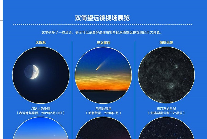 本書全面反映了最新的觀測技術和設備信息,經過大規模修訂和擴展,增加了48頁,總頁數達到416頁。全書配有全新的照片和星圖,設計煥然一新,並新增了五章內容,其中包括著名天文學作家肯·休伊特-懷特撰寫的關於雙筒望遠鏡、望遠鏡和月球之旅的三篇重要文章。