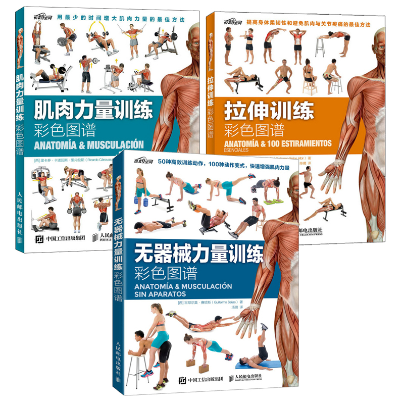 肌肉力量訓練+拉伸訓練+無器械力量訓練彩色圖譜(全3冊) 器械訓練 體能練習 健身塑身 核心力量協調性肌肉訓練教程 健身計劃