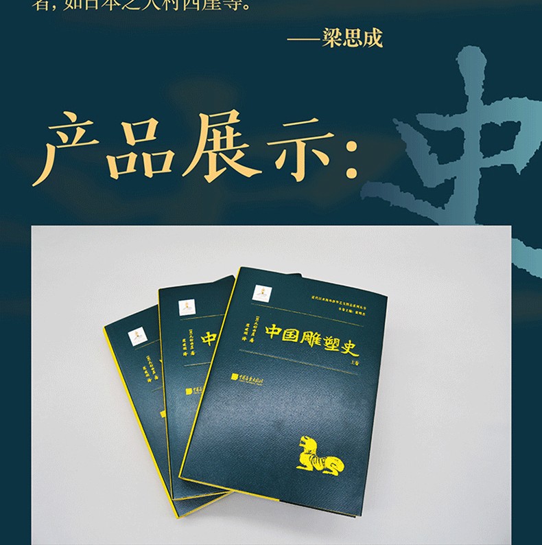 梁思成所著《中國雕塑史》上啟太古,下至明清。由於該書脫胎於講義,所以體量較弱。但是內容高度凝練。梁思成在教授此課的時候,“中國的很多重要歷史遺址還未發掘,他也尚未到過雲崗、龍門、天龍山、南北響堂山、敦煌、大足等地進行過實地考察”,但是梁先生在美國學習和赴歐洲旅遊時,在歐美各處的博物館中見到了帝國主義列強從中國大陸掠奪的大量雕塑珍品,與此同時,此時的梁先生也熟讀了歐洲以及日本學者的關於雕塑的大量著述,這份講稿就是在此基礎上完成的。這份文稿中所舉的實例多引自國外人的書籍或者國外博物館的藏品。 《中國雕塑史》這本書的*終完成則是在編者林洙女士煞費苦心收集了梁先生所用的圖片,並增補了有關雲崗、龍門等石窟的精美圖片,*終使此書成為一本圖文並茂的完整的中國雕塑史著作。
