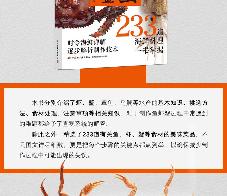 除此之外,精選了233道有關魚蝦蟹的美味菜品,不止圖文詳盡細緻,更是把每個步驟的關鍵點都重點列舉,以確保減少製作過程中可能出現的任何一點失誤。