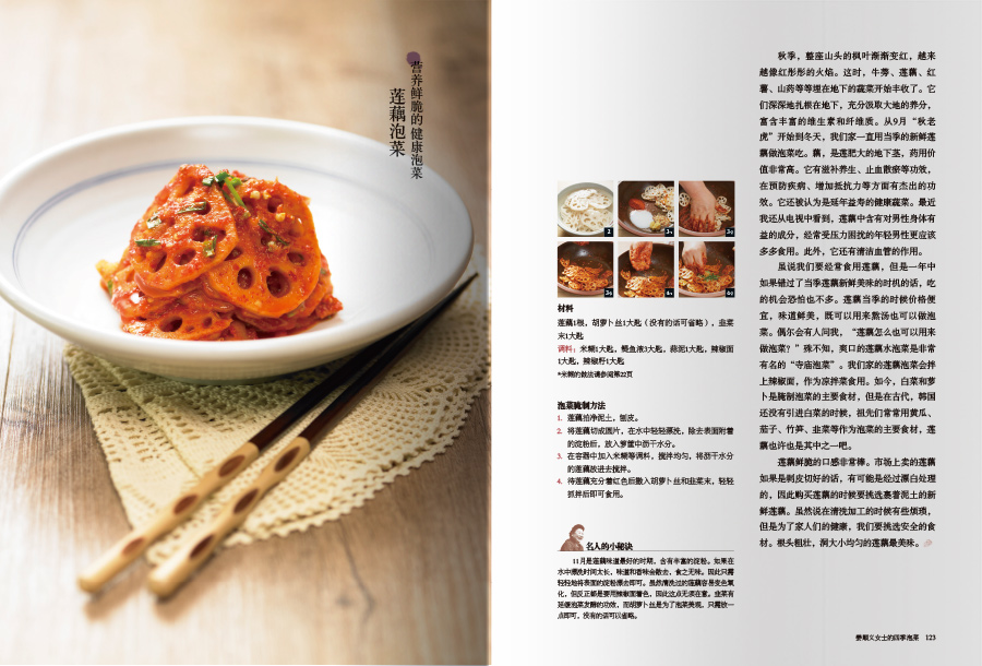 《四季泡菜》分為兩個部分介紹韓國泡菜的醃製方法。