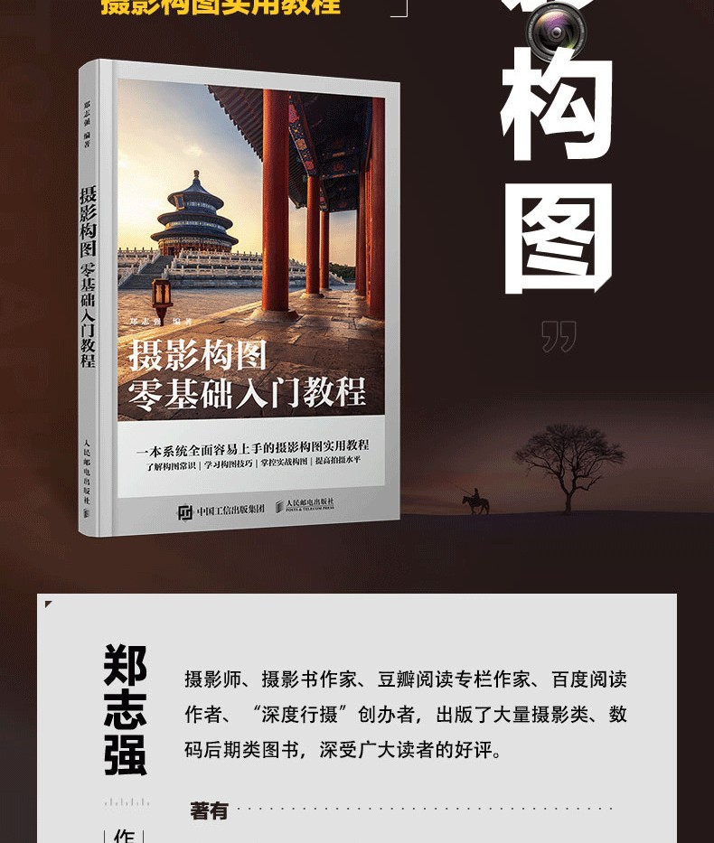 鄭志強,攝影師、攝影書作家、豆瓣閱讀專欄作家、百度閱讀作者、“深度行攝”創辦者,出版了大量攝影類、數碼後期類圖書,深受廣大讀者的好評。著有《數碼單反攝影寶典》《數碼攝影核心技法寶典:從前期到後期》《簡單攝影課》等多本圖書。