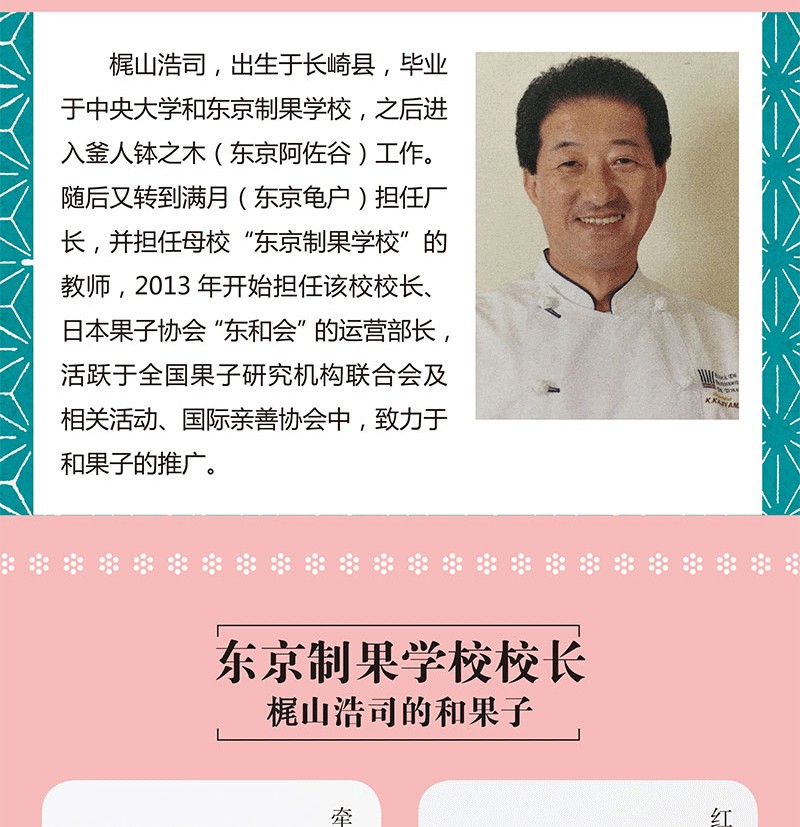 梶山浩司,出生於長崎縣,畢業於中央大學和東京製果學校,之後進入釜人缽之木(東京阿佐谷)工作。隨後又轉到滿月(東京龜戶)擔任廠長,並擔任母校“東京製果學校”的教師,2013年開始擔任該校校長、日本果子協會“東和會”的運營部長,活躍於全國果子研究機構聯合會及相關活動、靠前親善協會中,致力於在全世界範圍內推廣和果子。