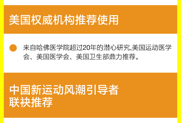 美國機構推薦使用。來自哈佛醫學院C過20年的潛心研究美國運動醫學會、美國醫學會、美國衛生部鼎力推薦。