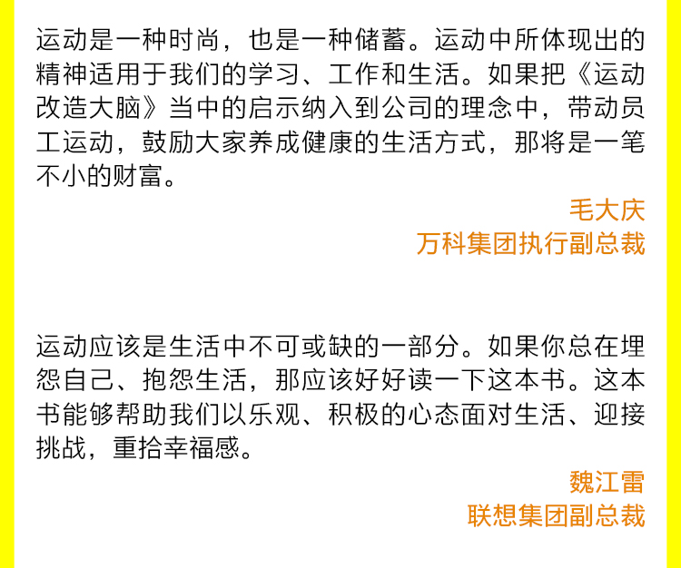 幾十年前,庫珀發現了運動與心臟的奧秘,瑞迪則在《運動改造大腦》一書中,通過確鑿的證據、大量突破性研究揭示了運動與大腦的聯繫。所以,動起來吧!你的大腦會感謝您的付出,並加倍回報給你。