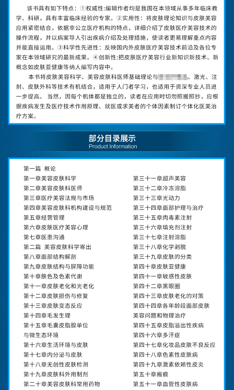實用美容皮膚科學 皮膚病痤瘡激光修復科學 護膚抗衰老 醫美 面診 微整形 斑問題 敏感肌護理 強脈衝光治療