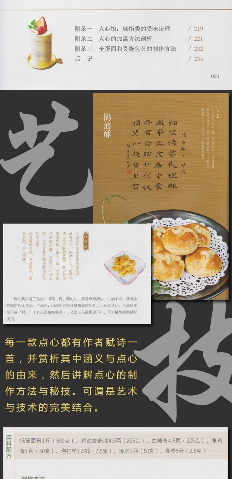 本書主要介紹了何大師最拿手的粵式點心,書中配有大量精美圖片,每一款都展現了外型、做法和秘技,價值點在秘技上。這些秘技一般只傳徒弟,不傳外人,是作者70年從業的心血結晶。除了技藝精湛,作者還是粵廚行業中的才子,擅長詩詞書法,晚年研修古典詩詞的合轍押韻,並且精心為每款點心題詩,既抒發了情志,也為粵廚技藝進行一番點睛解說。作者是廣東人,因此在寫書的過程中有很多口語化的表述。編輯在初審過程中,盡量在保證原有語言特色的基礎上,將比較難懂的口語盡量簡化了,有的還做了相關註釋。當然,書稿也存在很多問題,在此不再一一羅列,均在書稿中做了詳盡的修改。總體而言,書稿整體質量較好,沒有發現政治性、科學性和知識等方面的明顯錯誤。它區別於圖書市場的美食菜譜,不僅為讀者展現了作者在粵點製作上的高超技藝,並將粵點製作昇華為詩詞,通過詩彰顯粵點技法、淵源和文化,揭示粵點的精髓,把粵點的技法和藝術完美結合在一起。由於......