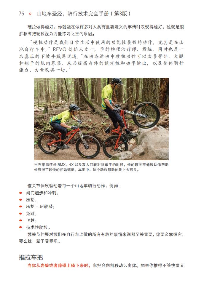 本書是一本全面詳細介紹山地車騎行技術的指南。書中涵蓋了山地車的選擇與調校,人車合一的騎行姿勢,控制速度、創造動力、切過彎道、征服障礙的方法與技巧,包括高效合理的踩踏、壓抬、獨輪騎、後輪滑、兔跳、飛躍等各種技術動作。同時還講解了傷病的預防與處理相關知識,並針對各種地形,如彎道、陡坡和崎嶇路面等,給出了極具價值的技術指導,最後還介紹了耐力賽、4X賽、速降賽、XC越野賽等多種比賽形式及參賽經驗和技巧。本書適合廣大的山地車騎行愛好者閱讀,是一本山地車騎行訓練推薦的手冊,為廣大愛好者提供了專業的技術指導,幫你騎得更快、更好、更安全並更有自信。