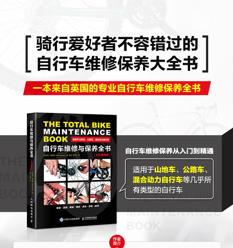 這是一本多方面講解自行車維修保養知識、讓自行車保持上佳狀態不可或缺的自行車全書。本書從自行車的裝備、設置、基本工具及維修、剎車、傳動、車輪、減震器、中軸和車頭碗組、零件等方面系統介紹了自行車維修保養知識,用700多幅圖片按步驟細緻講解維修保養全過程。無論你是剛剛接觸自行車運動的新人,還是具有一定經驗的騎行愛好者,只要想獲得一些不同種類自行車的維護建議,本書都能實現你的目標並使你更加享受自行車騎行運動。