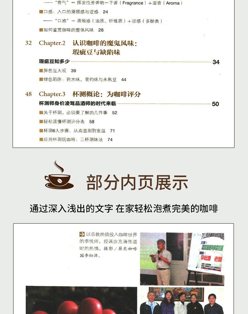 《精品咖啡學(下):杯測、風味輪、金杯準則 咖啡老饕的入門天書》通過深入淺出的文字,作者圍繞著如何鑑賞咖啡的千香萬味,到如何辨識缺陷豆,再到如何進行咖啡萃取,後探討了金杯準則的歷史文化,對咖啡的量化問題進行了探討,全書結語回顧第三波的影響力,並對第四波做了前瞻預測。