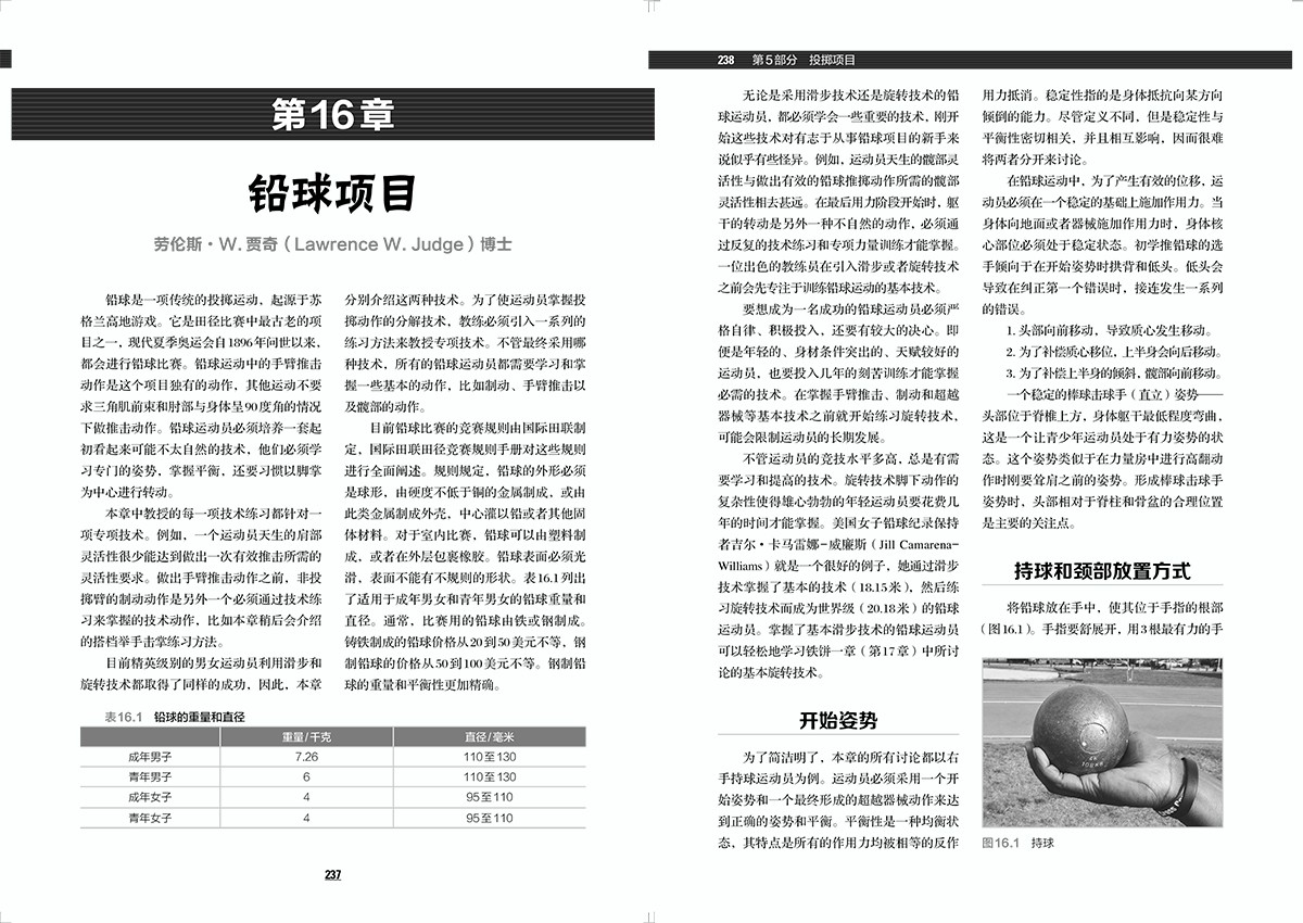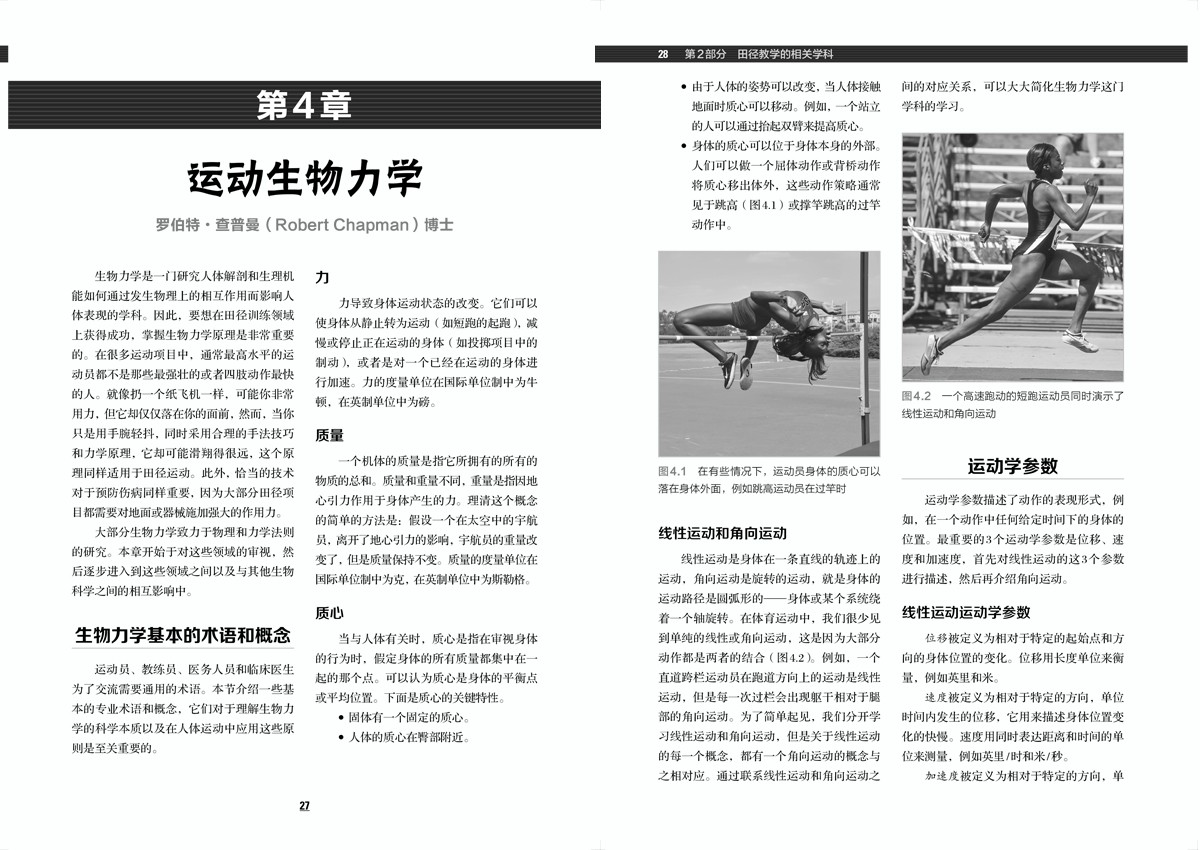 田徑運動素有“運動之母”的美稱,而良好的教學資源是保障各院校及專業運動隊順利開展此類項目的關鍵,其中教練員則是決定性因素。 《美國田徑協會田徑訓練教學指導》由美國田徑協會與9位運動訓練相關領域的專業人士合力打造,旨在為教練員提供一套以基礎理論系統全面、技術講解細緻詳盡、示例演示清晰明了為特點的教學指導體系。全書不僅講解了運動心理學、運動生物力學、運動生理學等訓練的基礎理論,還針對跑、跳、投三個項群的短跑、接力、競走、跨欄、跳遠、跳高、鉛球、鐵餅等13個田徑項目的訓練原則、技術技巧、訓練方法及訓練計劃進行了細緻講解,無論您是學校的體育老師、基層教練員,還是專業隊教練員,相信都能從《美國田徑協會田徑訓練教學指導》中有所獲益。