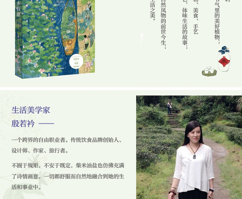 殷若衿,本名殷悅。自幼習畫,且研習易學、 中醫、茶、香事、插花等多年。作家,東方美學生活踐行者與倡導者,二十四節氣文化 推廣者,國家中級茶審評員,東方美學平台“衿日”、東方美學服裝高級定製品牌“草木衿櫻”主理人。曾出版《印度拾塵記》《草 木有趣一一跟著節氣過日子》。