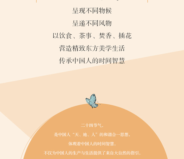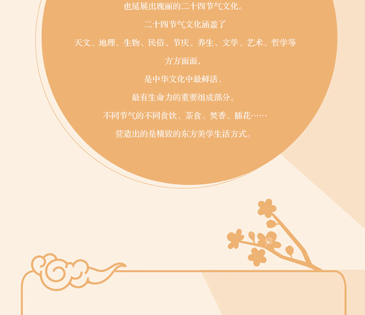 二十四節氣,是中國人 “天、地、人” 的和諧合一 思想,體現著中國人的間時智慧, 不僅為中國人的生產與生活提供了來自大自然的指引,也J王展出瑰麗的二十四節氣丈化。二十四節氣文化涵蓋了天文、地理、生物、 民俗、節慶、養生、文學、藝術、哲學等方方面面,是中華文化中最鮮活、最有生命力的重妥組成部分。不同節氣的不同食飲、茶食、 焚香、插花……營造出的是精紋的東方美學生活方式。