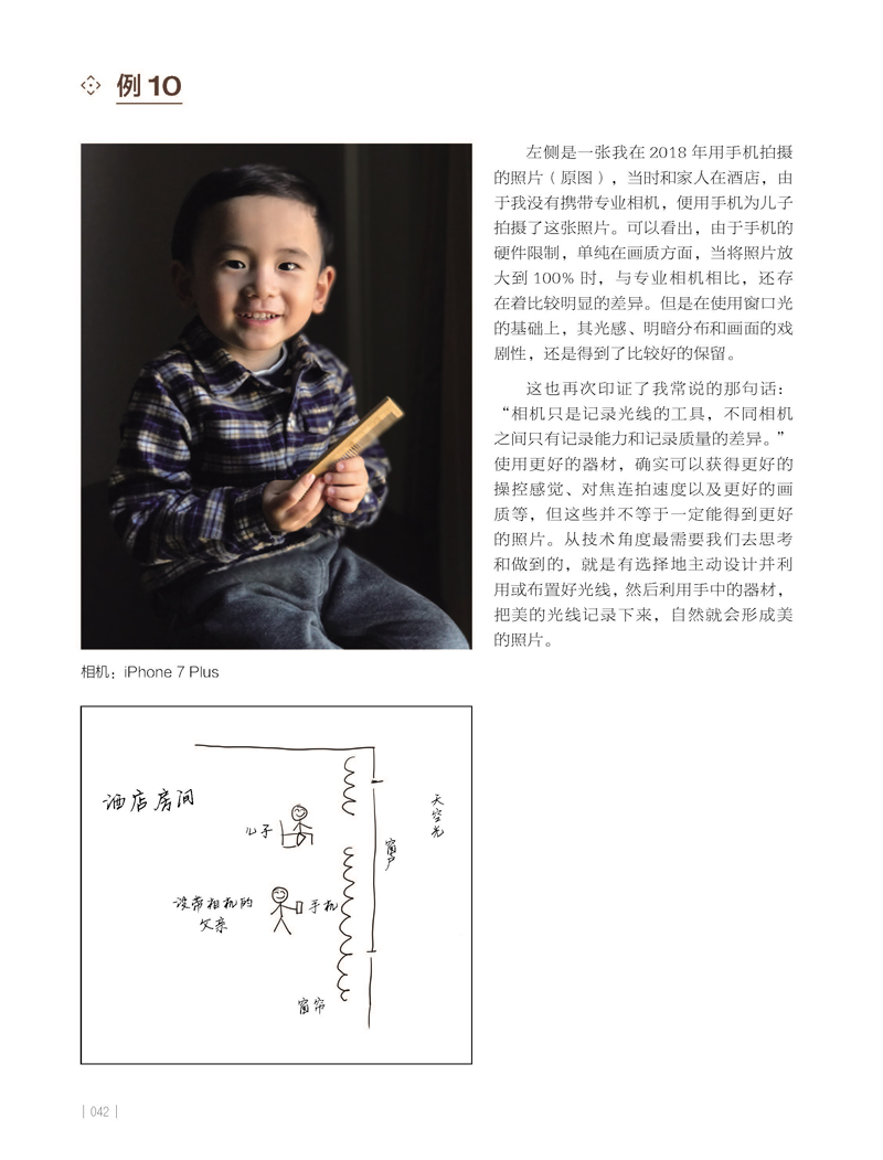 如果可以回到2008 年,面對那個剛剛拿起相機,興奮而懵懂地天天研究操作設置,到處亂拍而又樂在其中的自己,和他聊聊學習攝影這件事,我想一定會發生下面的對話。現在的自己:“別再過多關注相機的品牌、鏡頭的型號、操控的設置、後期的預設和濾鏡……你應該去關注的是光,因為你拍的就是光。”曾經的自己:“你說的我知道,大家不都說攝影是用光的藝術嗎?不過能不能具體一點兒告訴我,到底怎麼去理解和使用光?就是打燈對不?”現在的自己:“不,不是的,這個也不是一兩句話能說清楚的,可能需要一本書。”曾經的自己:“那這本書你有嗎?”現在的自己:“現在有了。”…………