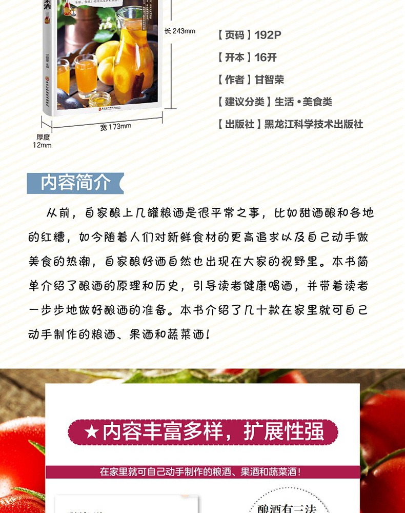 從前,自家釀上幾罐糧酒是很平常之事,比如甜酒釀和各地的紅糟,如今隨著人們對新鮮食材的更高追求以及自己動手做美食的熱潮,自家釀好酒自然也出現在大家的視野裡。本書簡單介紹了釀酒的原理和歷史,引導讀者健康喝酒,並帶著讀者一步步地做好釀酒的準備。本書介紹了幾十款在家裡就可自己動手製作的糧酒、果酒和蔬菜酒!