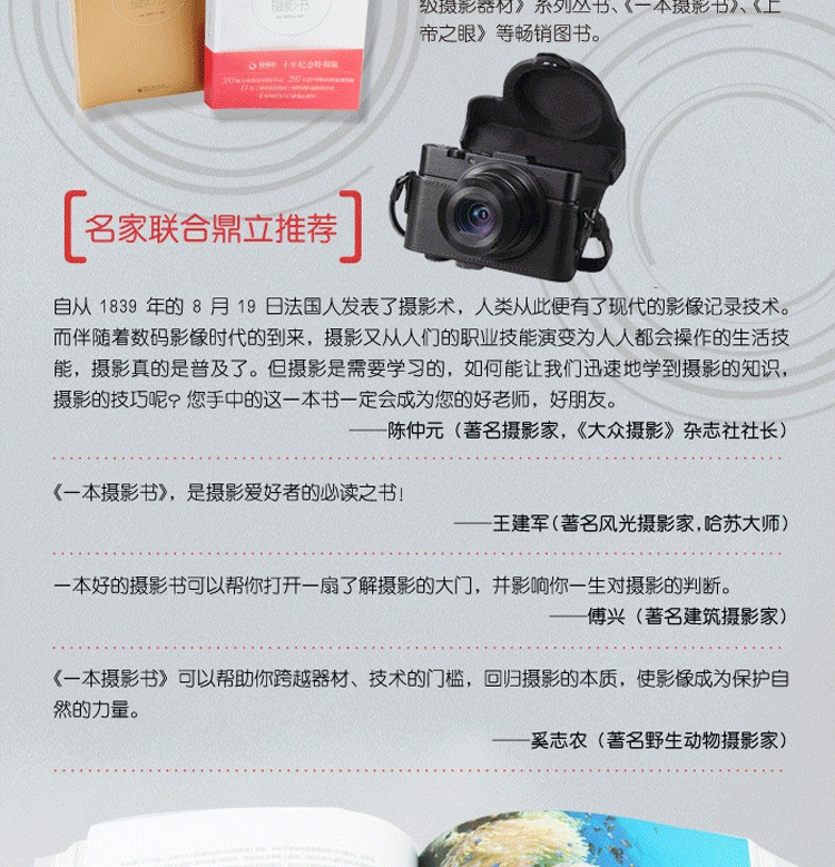 《一本攝影書》的內容是由暢銷攝影書《很好攝影器材》製作團隊的十幾名優秀作者與編輯歷時4年時間共同創作完成的。
