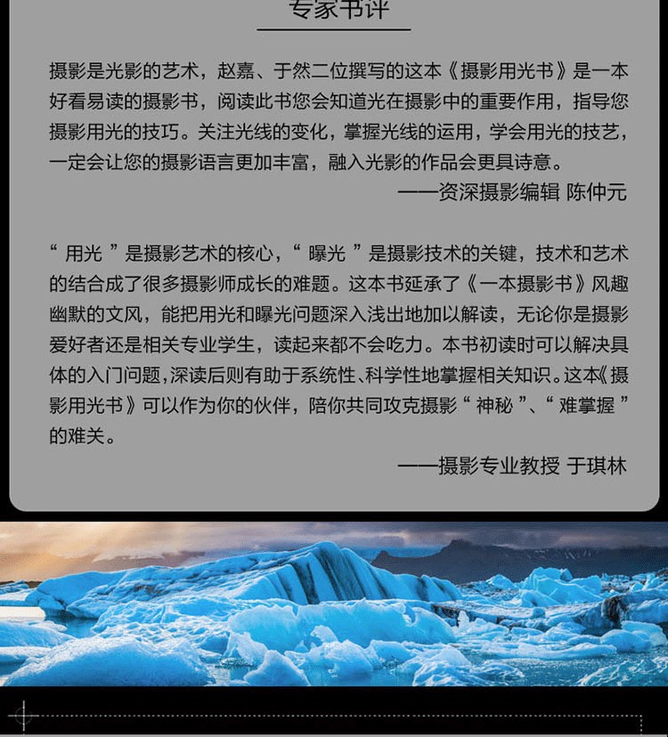 本書全面介紹了攝影中與光線相關的知識,涉及從用光到曝光的各個方面,還涉及攝影技術與藝術,旨在通過通俗的方式,講解很重要的攝影用光知識,讓讀者對用光產生濃厚的興趣。本書適合攝影愛好者、攝影史參考閱讀,也可作為攝影相關專業的教學參考用書。